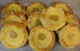 | Perunapiirakat teen yleensä pyöreiksi, kuvassa täytetetty, mutta vielä rypyttämätön piirakka. |