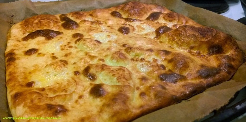 Vuohelan herkku lähetti minulle testattavaksi heidän Farina -tuotesarjan jauhoja. Tällä kertaa testasin lettujauhoseosta, josta tein lettujen sijasta pannukakkua ja toimii kyllä mainiosti myös pannareihin tämä jauhoseos. Jauhoseos on riisijauhoa, sokeria, suolaa ja ksantaania, eli ainekset ovat hyvin yksinkertaiset ja tämä sopii myös maissi- ja peruna-allergisille. Pannukakku  kupli todella upeasti uunissa jopa ilman leivinjauhetta. Tätä kannattaa kokeilla!