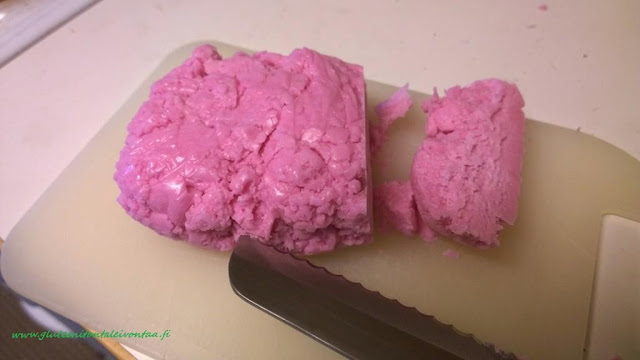 valmistettua kuorrutetta (joka on värjätty). Pomadan oikeaoppinen valmistaminen