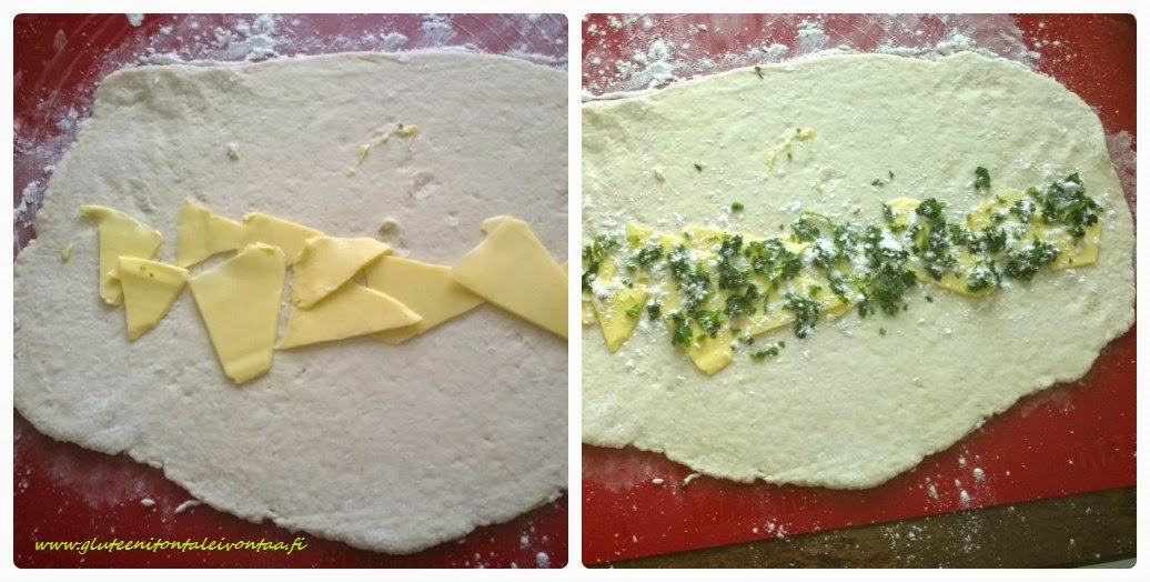 taikinaa (kts. kuva). Ripottele voisiivujen päälle murskattuja yrttejä sekä