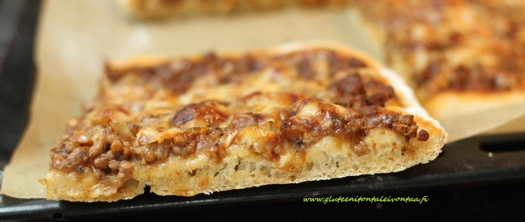 käyttäen (tähän käy mikä tahansa gluteeniton jauho). Täytä pizza haluamillasi
