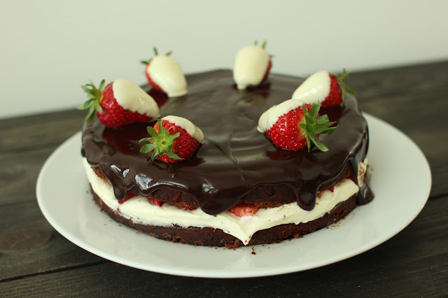 päällys saa reippaasti vain valahtaa reunoille. Suklaisen kakkupohjan ja