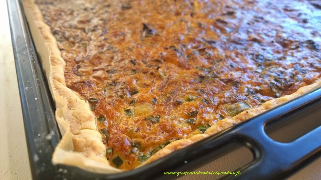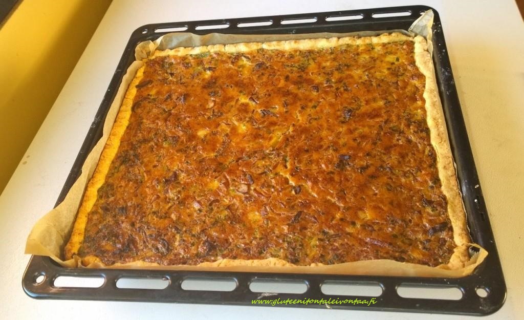 myös leveämmän uunin pellille. Kuvassa oleva piirakka on tehty pienemmälle
